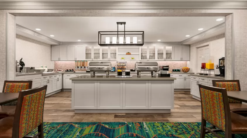 Come experience our modernized suites, lobby,  lounge, and enhanced pantry.   Homewood Suites by Hilton @ the Bell Tower Shops is an upscale all-suite hotel, offering a full kitchen and separate bedroom for guest to feel like they have found their very own 'home away from home.' Complimentary high-speed wireless Internet is accessible in all guest suites. Each morning, our guests look forward to having a "Suite Start" buffet breakfast that is sure to please your taste buds! We also look forward to seeing our guests Wednesday evening for the Evening Social- complete with a complimentary light dinner and beverages. As a Homewood Suites Guest,  you are sure to have all of your needs met with our on-site fitness center, business center, heated outdoor pool, Jacuzzi spa, and guest laundry.